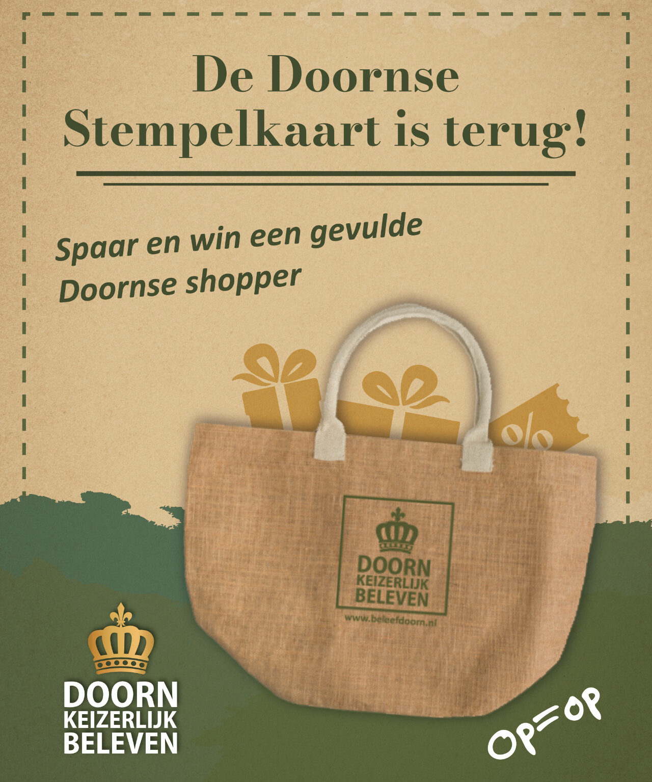 Bij iedere aankoop bij een van de deelnemende winkels of horecazaken ontvang je een stempel. Is jouw stempelkaart vol met 10 unieke stempels? Lever hem in en ontvang een Doornse shopper, gevuld met 10 verrassende cadeautjes en kortingsbonnen