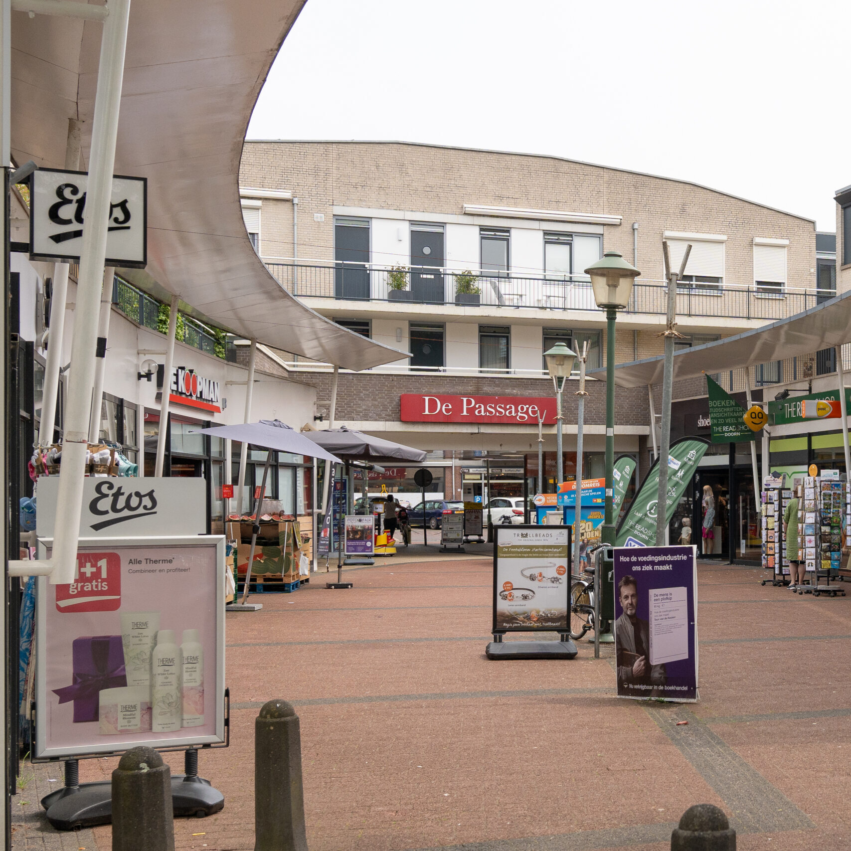 Een gezellige winkelstraat in Doorn, die de supermarkten met elkaar verbindt.